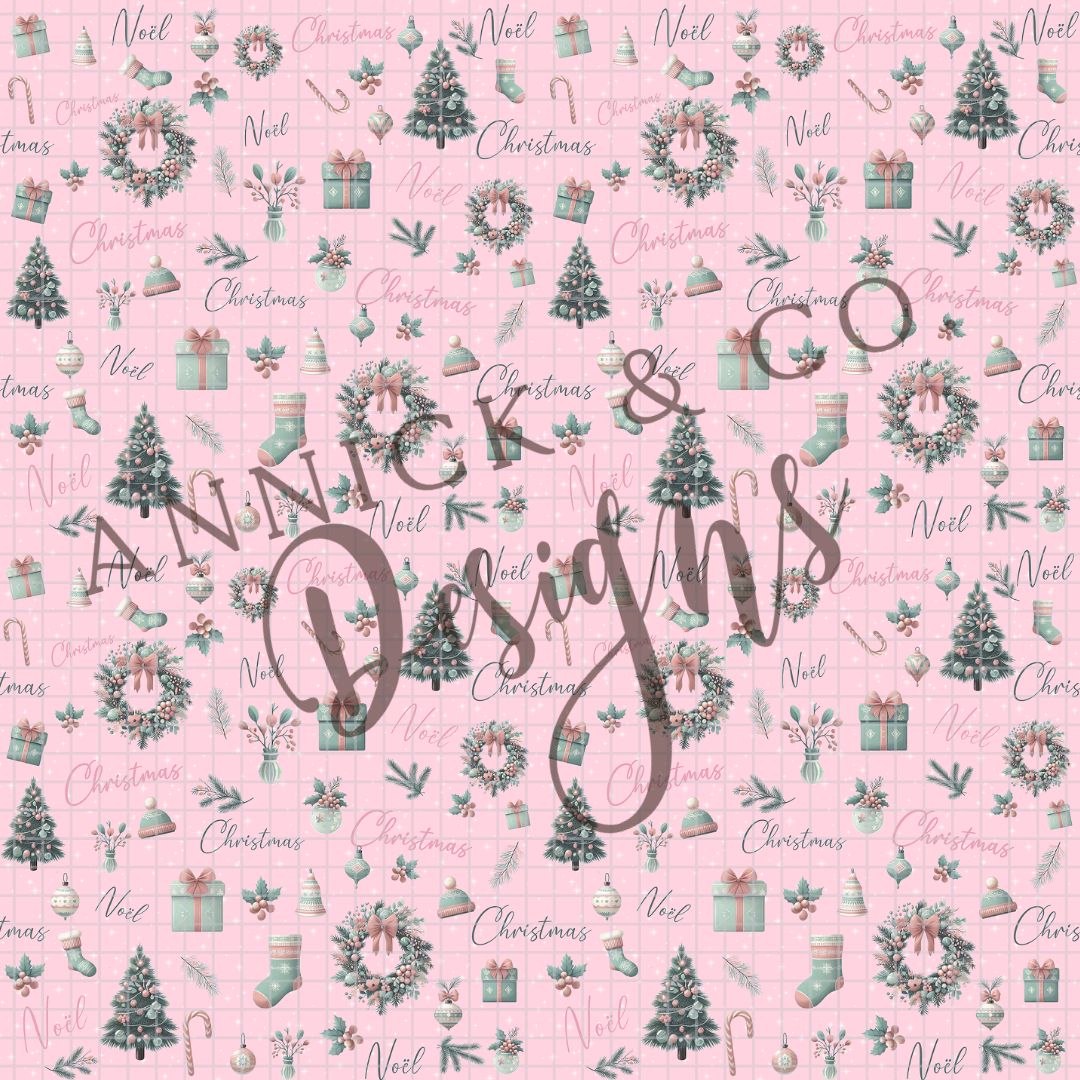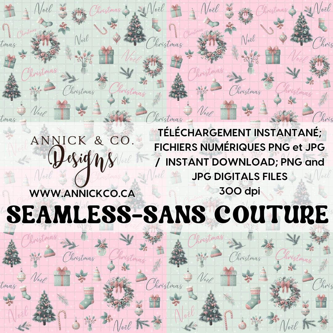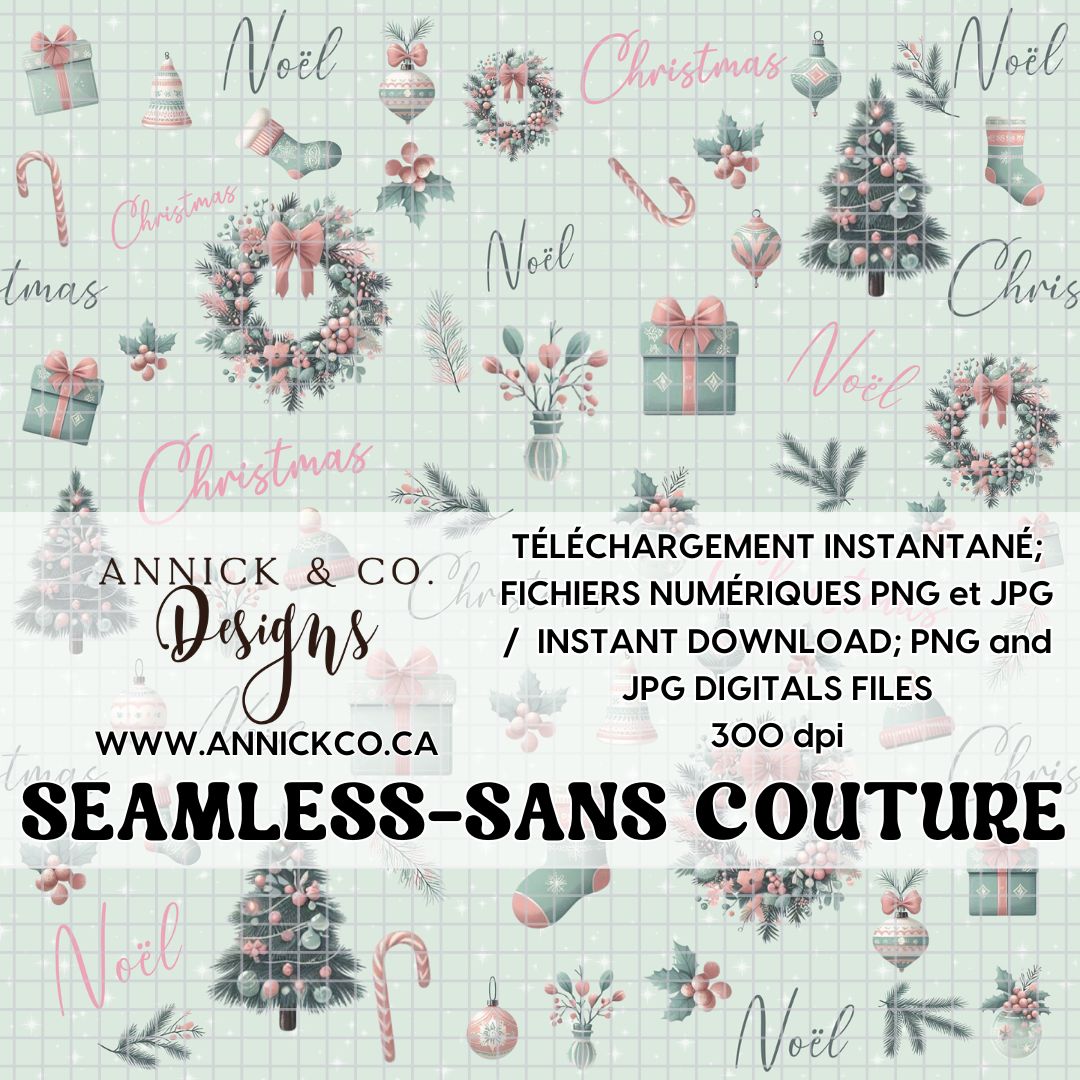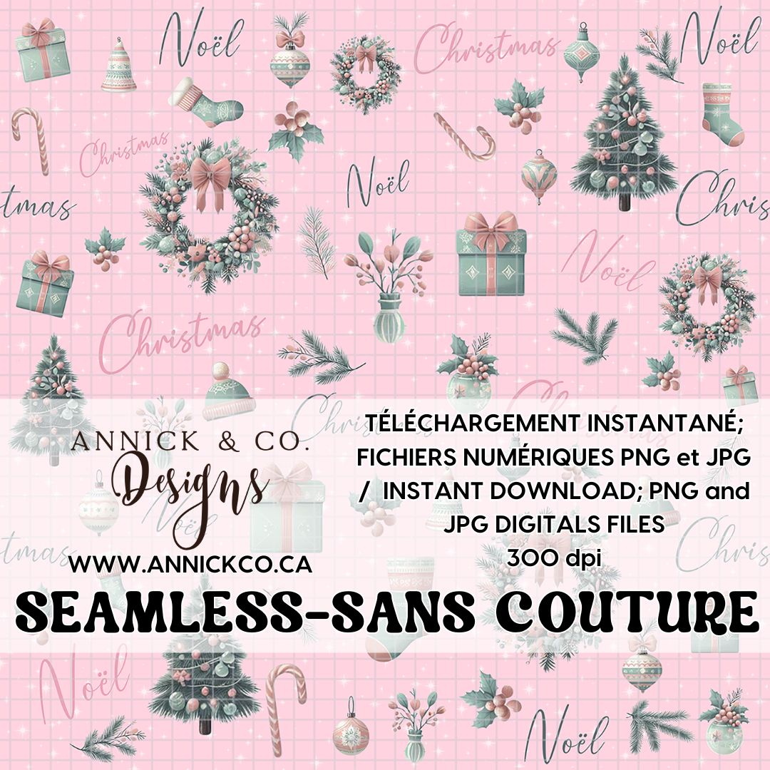 Noël Rose et Menthe - Fichier numérique PNG sans couture