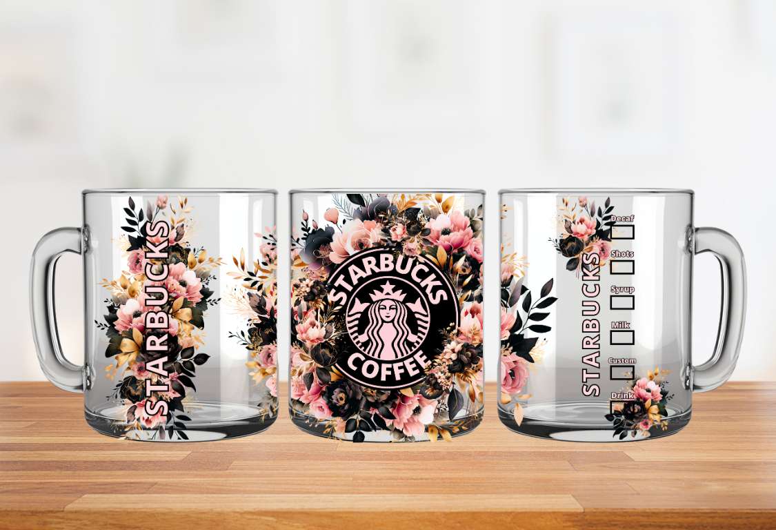 Tasse double parois bouquet floral rose et noir STARBUCKS Black and pink flowers 15oz double walled mug
